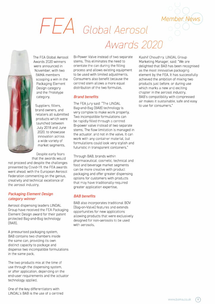 LINDAL’s BAB featured in BAMA’s Aerosol Focus
