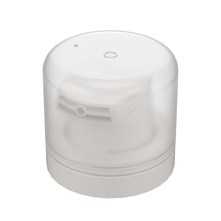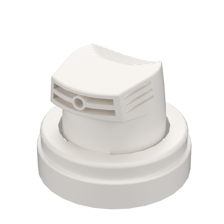 Ideal for gel formulations, this insert-less spray head offers clean and efficient dispensing. The short skirt design is compatible with most aerosol cans, ensuring broad usability across standard packaging formats. It pairs seamlessly with male valves (LI98, LIB, and male BOV) and supports various overcap options, available in matt or gloss finishes. The actuator features a matt finish for a consistent, high-quality look.